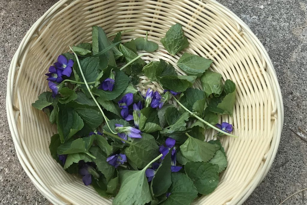 Violets have been symbols of romance since ancient times, and their medicinal qualities were recorded in Arabic medical texts and later copied into European herbals. The common blue violet that appears in late spring lawns is edible and is as cooling, gentle, and nourishing as you would expect this sweet plant to be. It’s no wonder that folks once believed that drinking an infusion of violets could heal a broken heart. While that quality might be debatable, there is some evidence that violets can act as an anti-depressant. Violet’s anti-inflammatory properties are beneficial to skin conditions, particularly hot, red rashes such as eczema. In Germany, the violet is well-regarded as a skin-nourishing plant, especially for children.