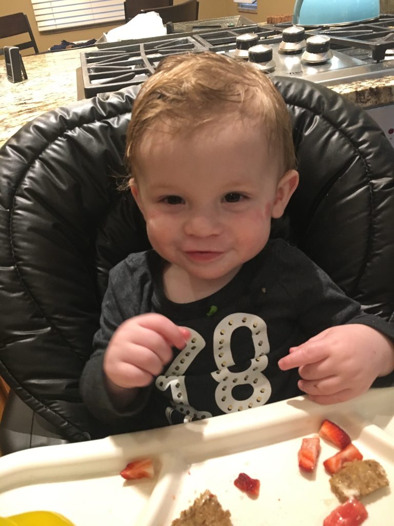 Sweet Cheeks is available in two forms: a spray bottle and a balm stick. The spray bottle will ensure that there is no contamination from the diaper area; the balm stick is easy to apply to faces, elbows, and other areas. My nephew M. thinks applying it himself is a hoot! He also likes to apply it to the couch and the kitchen counter…